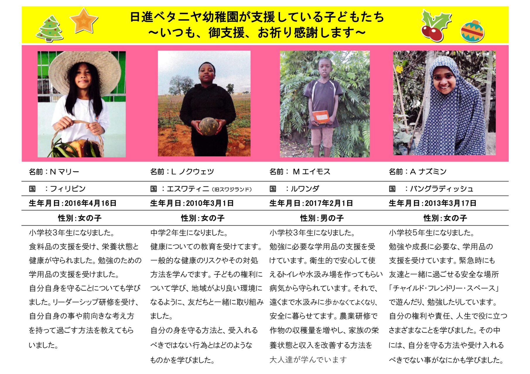 日進ベタニヤ幼稚園ではワールドビジョンジャパンのチャイルドスポンサーとして、4人の子どもたちを支援しています。